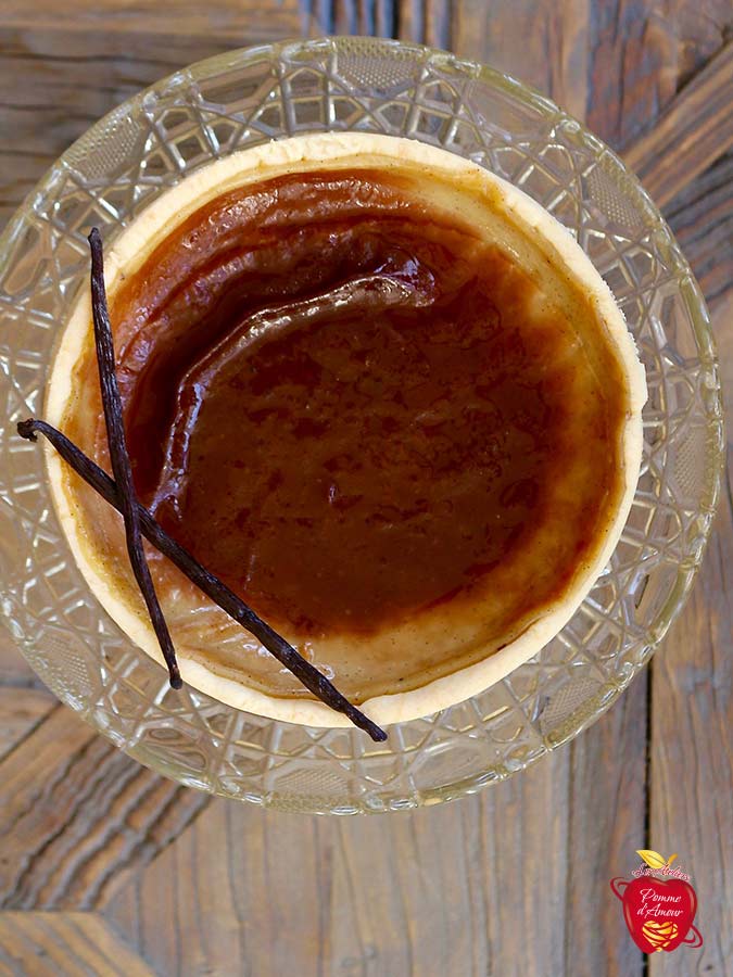 Composé d’une pâte bisée croustillante et d’un flan parfumé à la vanille Bourbon.